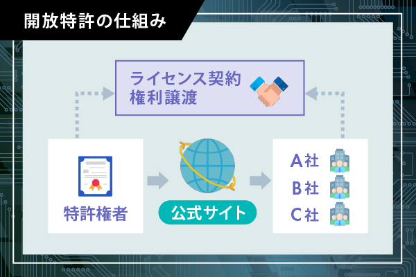 開放特許は取得済みの特許権を譲渡やライセンス契約で他者が利用できる