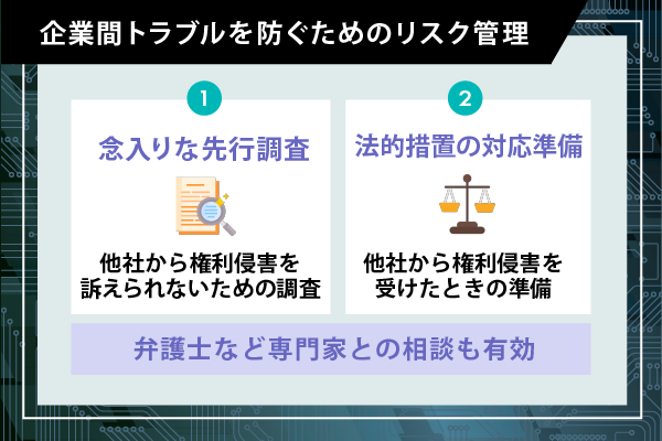 特許侵害に関連するリスク管理について、以下の2つの視点を通して解説します。