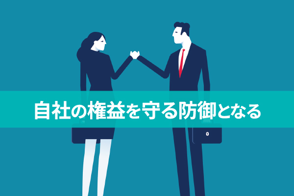 - 特許取得により後発企業の参入を防ぎ自社の権益を守る防御障壁となる