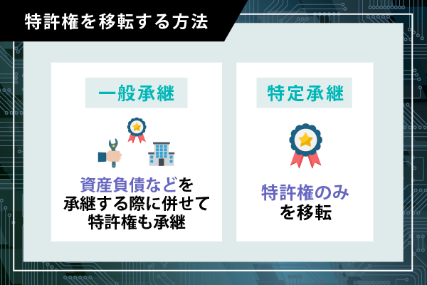 一方、特定承継とは任意の第三者に対して特許権のみを移転することです。